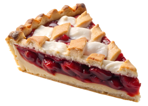 A delicious slice of cherry pie with a lattice crust and cream cheese topping isolated on transparent background, a perfect dessert for any occasion
