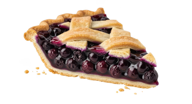 A slice of blueberry pie with a lattice crust, isolated on transparent background