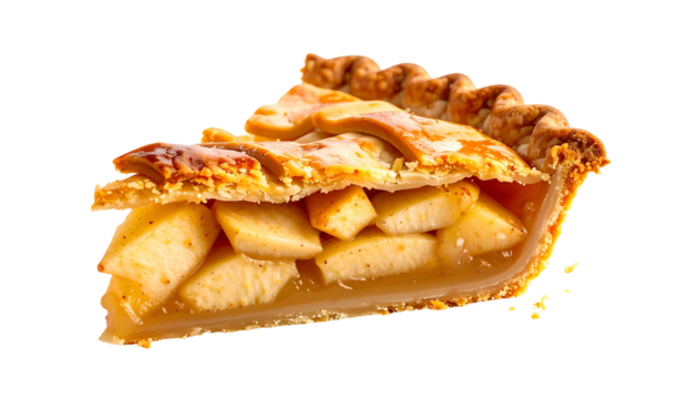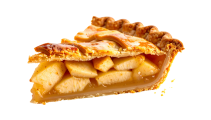 Delicious slice of apple pie isolated, classic American dessert with lattice crust and sweet filling on a transparent background