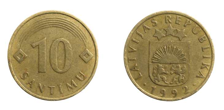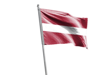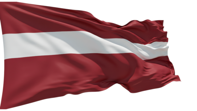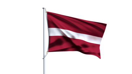Waving flag of Latvia isolated on transparent background, national symbol, fabric