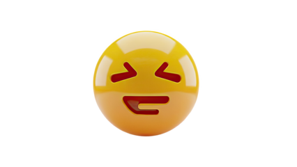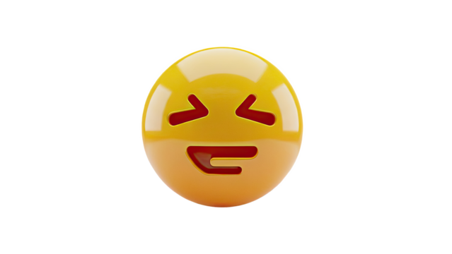 Hilarious laughing emoji with wide open mouth and closed eyes expressing extreme joy and amusement isolated on transparent background