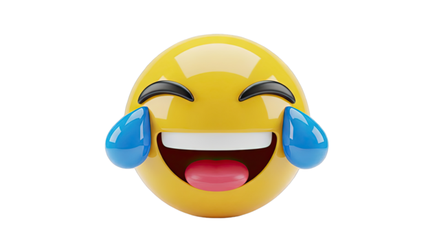 A laughing emoji with tears of joy, isolated on transparent background