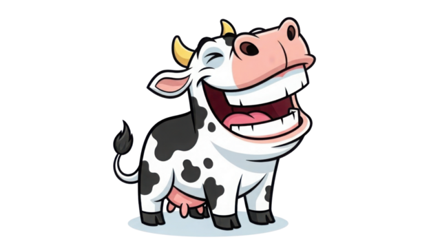 Cartoon illustration of a laughing cow isolated PNG with Transparent Background