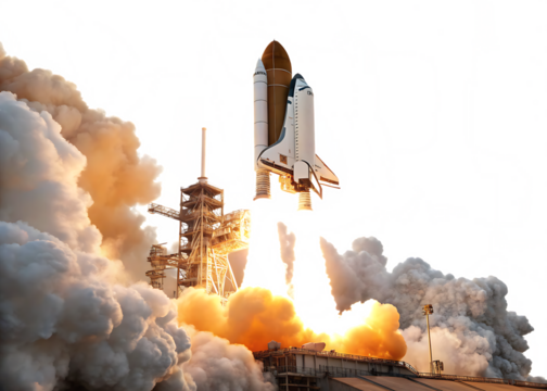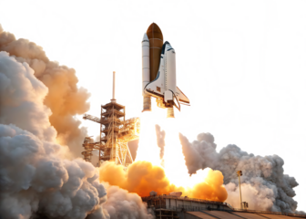 Space shuttle launch isolated on white background.AI Generated