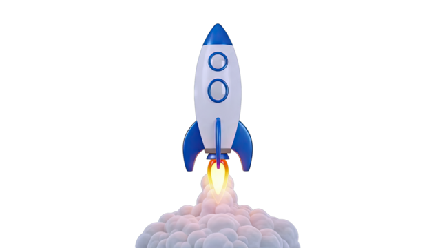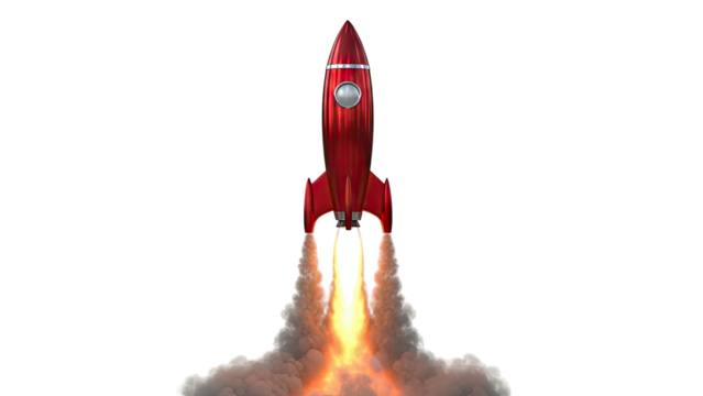 Cartoon rocket launch with transparent background for dynamic illustrations