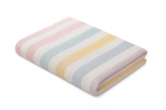 Isolated stack of folded colorful bedsheets on display, laundry pile, pastel colors