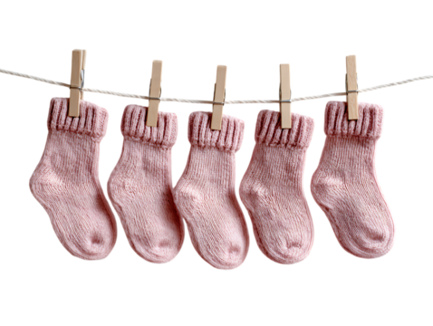 A close-up view of a clothesline with clothes pegs holding a line of freshly washed shirts. isolate on transparent background