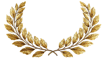 Golden laurel wreath,  circular,  decorative.  Detailed  leaves,  gold  hue.  Dark  background.  Ornate design