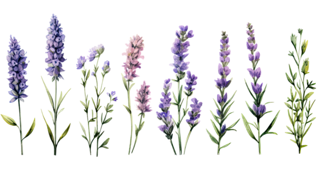 lavender set png. set of lavender flowers isolated. lavandula flower. aromatic plant of lavender isolated. lavender top view png. lavender flat lay png