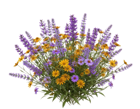 Wildflower bouquet with lavender transparent background cutout png