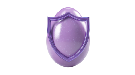 A glossy, vibrant purple egg with a metallic silver shield affixed to its surface