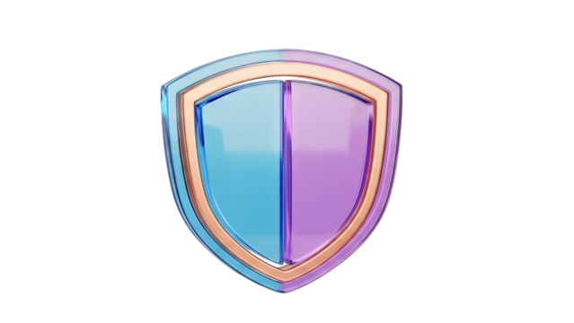 Translucent Shield with Blue and Purple Halves, Rose Gold Trim