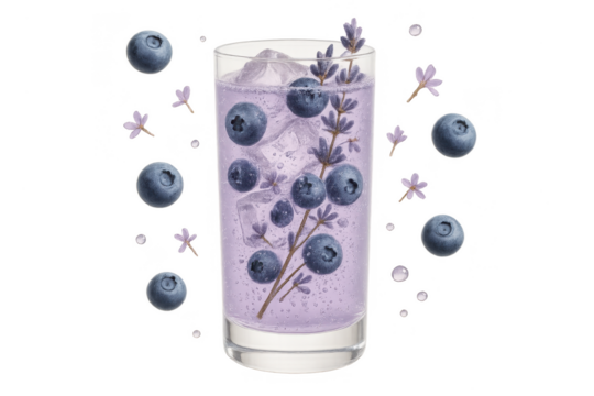 Refreshing Blueberry Lavender Cocktail Glass Isolated on Transparent Background
