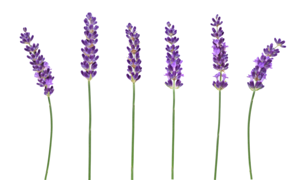 Multiple purple lavender flower stems isolated cutout on transparent