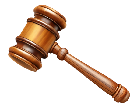 Judge gavel isolated on transparent background for legal themes