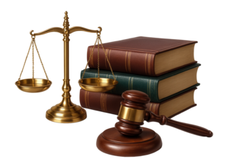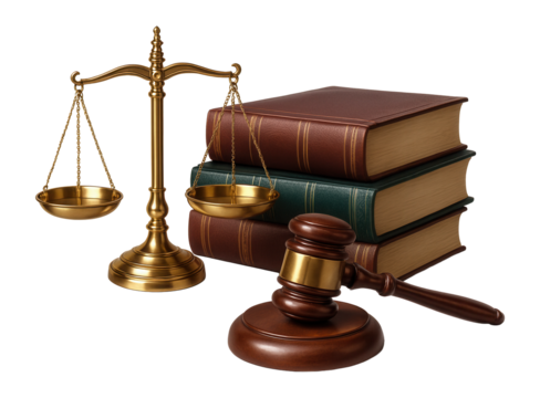 Justice scales, gavel, and law books symbolizing legal system