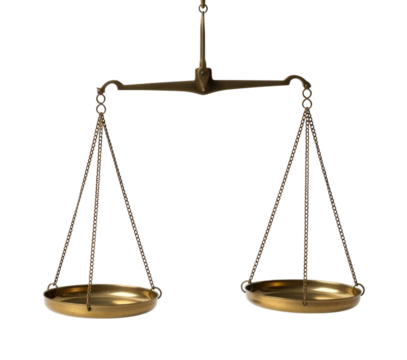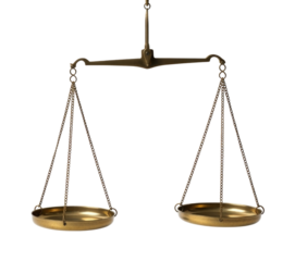 Illustration of a balance scale with equal weights on each side, symbolizing equilibrium, justice, and fairness in a cartoon style isolated on transparent background