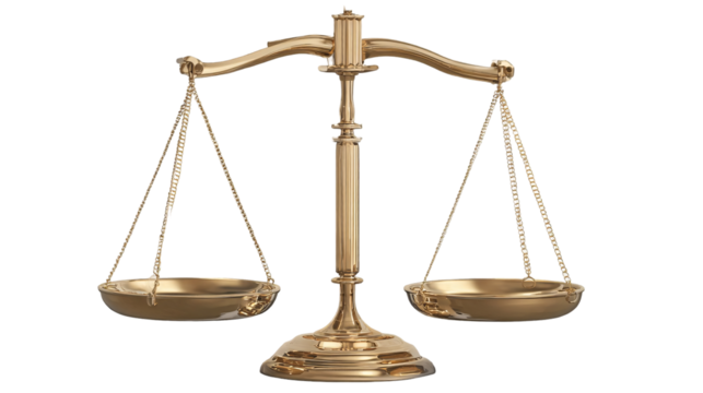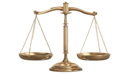 Golden scale of justice on transparent background for all legal concepts