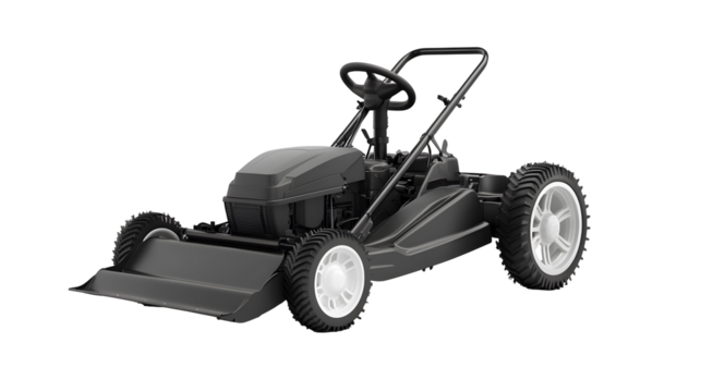 Innovative electric lawn mower showcasing modern design on a clean transparent background. Generative AI