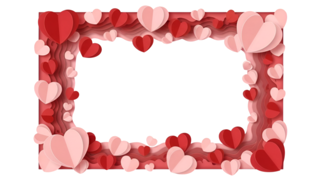A decorative frame made of layered red and pink paper hearts for Valentine's Day celebrations.