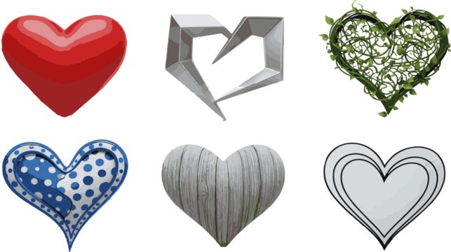 Diverse collection of heart shapes isolated on transparent background