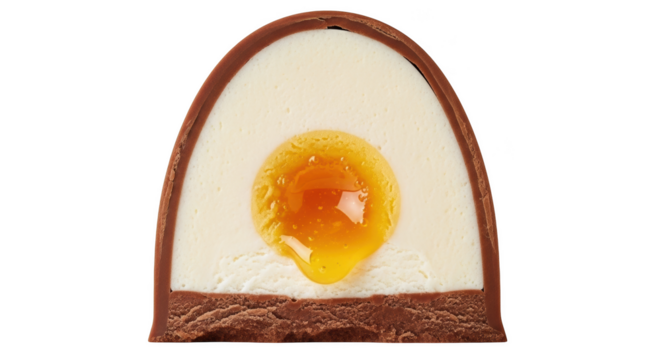 Chocolate egg dessert with creamy white filling and liquid gold center egg shape