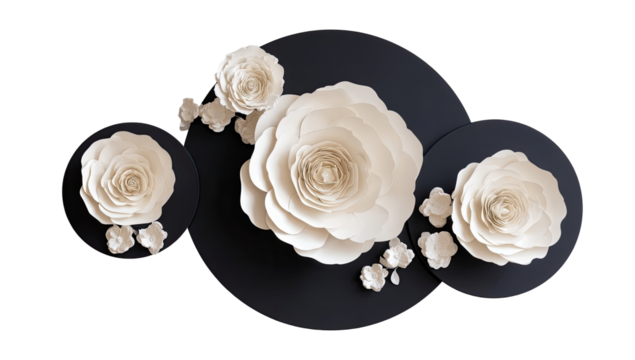 Minimalist shadow Christmas tree created by layered cutouts casting a conical silhouette with warm backlight, optical illusion, isolated on white background