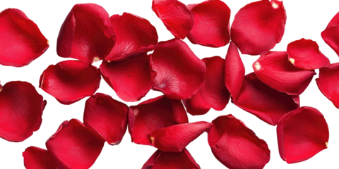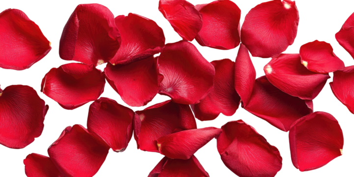 Delicate pink rose petals scattered gracefully, perfect for romantic or floral themes, isolated on a white background.