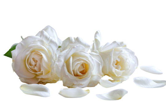 Heap of red rose petals for Valentine decoration, isolated on transparent background