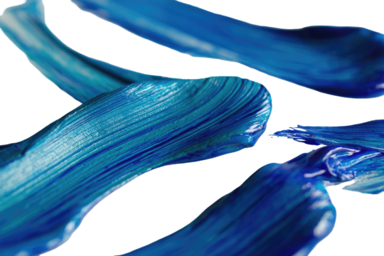 Abstract painting, vibrant blue, paint strokes.  Fluid, flowing shapes, various shades of blue, creating a dynamic composition