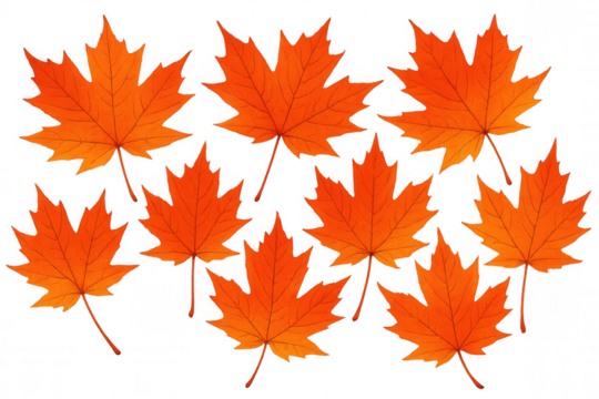 Orange maple leaves depicting fall foliage, showing seasonal colors and natural beauty. Transparent background for easy layering