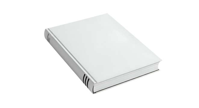 Plain white hardcover book laying at a slight angle