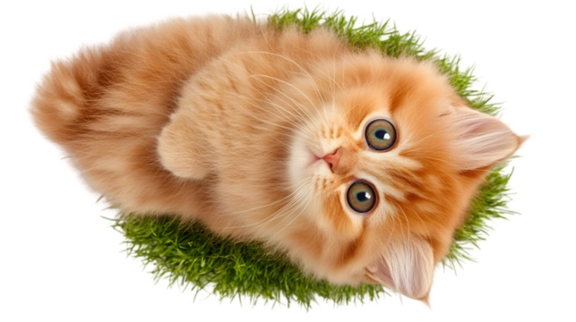 Adorable Orange Kitten Lying On Green Grass with Transparent Background Photo