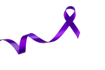 Purple ribbon on transparent background symbolizing awareness for cancer, lupus, Alzheimers disease, domestic violence, and other causes