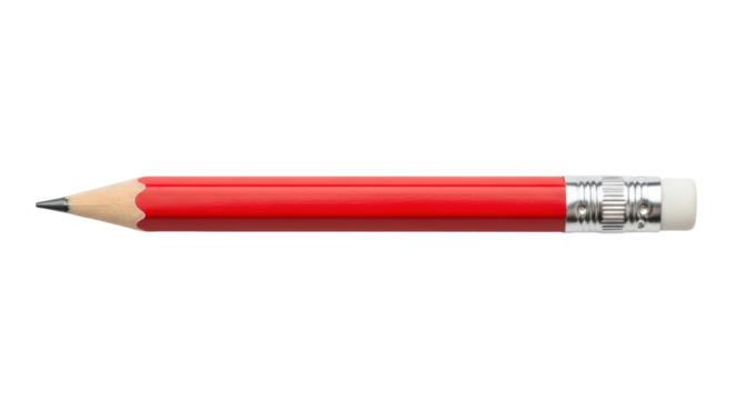 Red pencil isolated on transparent background, a wooden writing instrument for school, office, art, and creative projects with a sharp lead tip