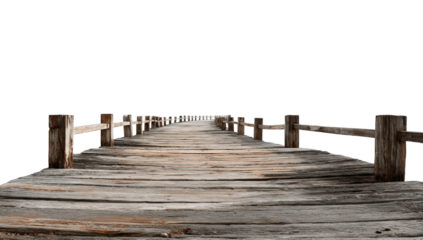 Rustic wooden benches arranged in a symmetrical pathway leading to a simple wooden archway isolated on transparent background
