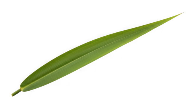 A single long green bamboo leaf with a pointed tip of transparent