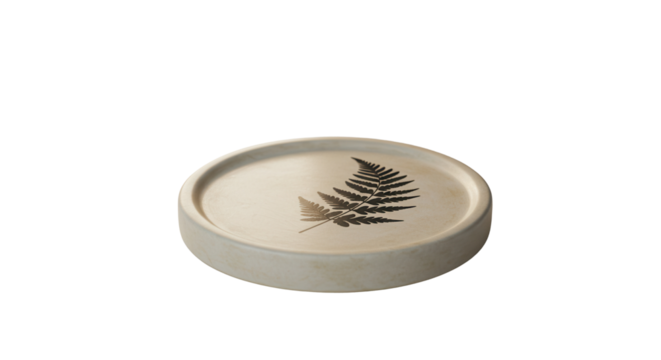 Round concrete tray with fern leaf design isolated PNG with Transparent Background
