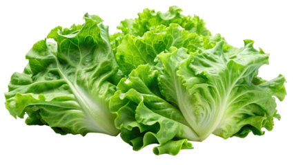 Fresh, vibrant green leaf lettuce with ruffled edges, perfect for salads, isolated on transparent background
