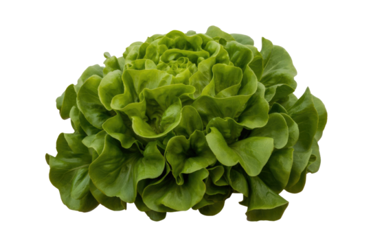 A lush head of green leaf lettuce, isolated on a transparent background, showcasing its vibrant color and texture. background removed