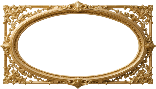 A golden ornamental design with vines and leaves, cut out and isolated on a transparent background, adding a touch of vintage elegance.