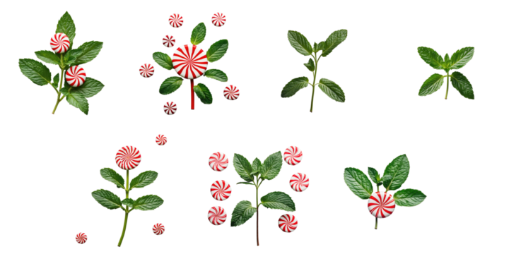 Fresh mint leaves isolated on transparent background. PNG file.