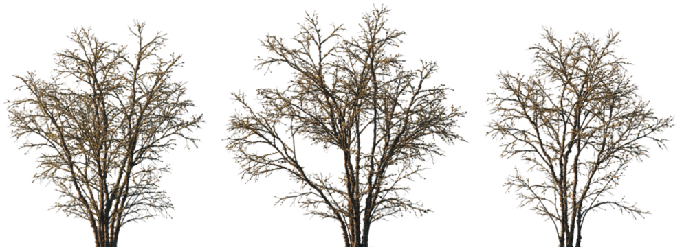 Collection of Bare Trees in Various Forms and Shapes Against a White Background for Seasonal and Nature Themes. Large Multiple Plant and Nature Collection Set Isolated on Transparent Background