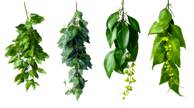 Bush layered leafy branches are shown on a transparent background, ideal for use in various design projects and creative activities. The natural elements provide versatility in applications