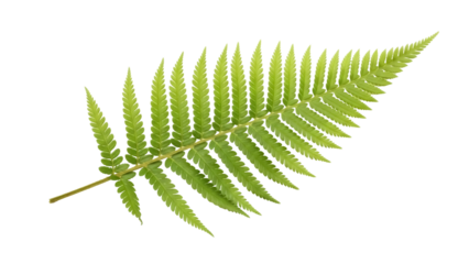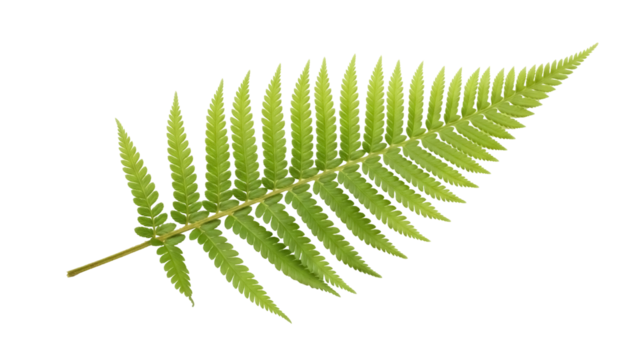 Isolated green fern frond is shown from above, a symbol of lushness and natural beauty