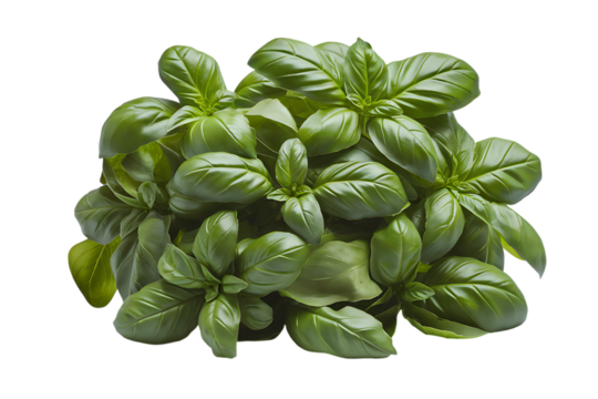 Lush green branch with fresh leaves and small buds against a transparent background.