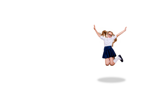 Composite photo collage of happy blonde schoolgirl jump autumn fall education season knowledge learner isolated on painted background
