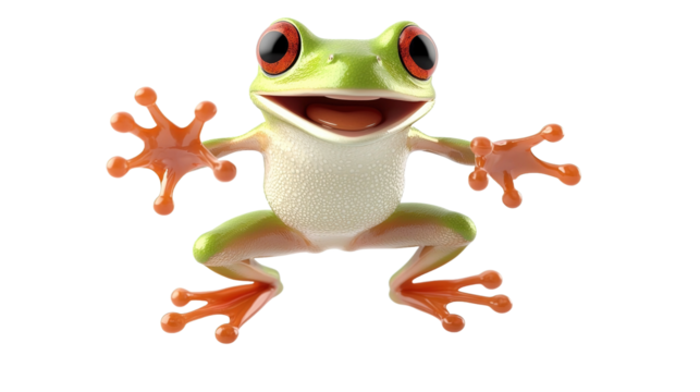 Jumping frog celebrates leap year fun,isolated on transparent background