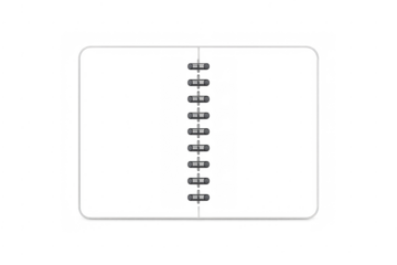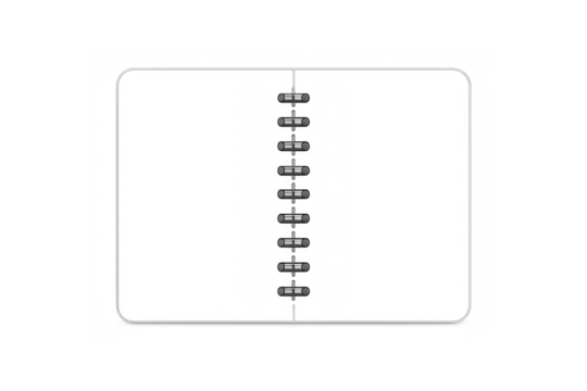 Open blank spiral notebook with brown recycled paper pages and section tabs, minimalist stationery on a transparent background