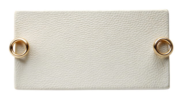 White leather clutch bag with gold rings isolated on a transparent background rectangular shape textured surface